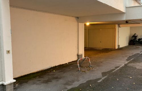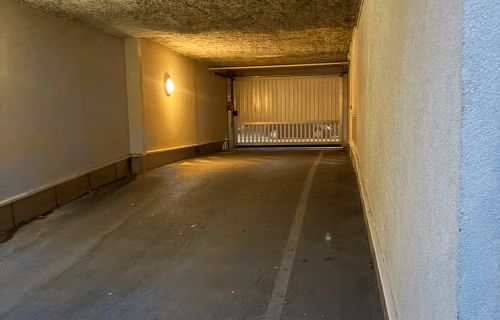 Place large (≈ 2,5m x 5,5m) avec accès portail automatique / badge.