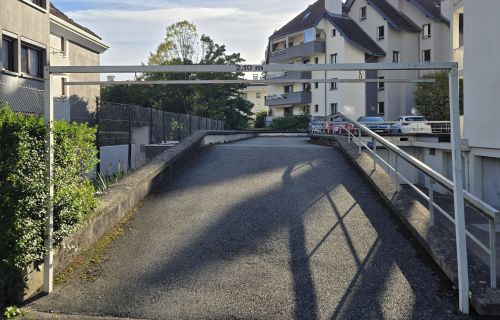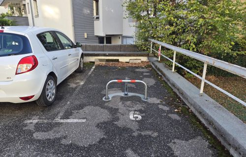 Place de stationnement extérieure sécurisée par un arceau antistationnement.